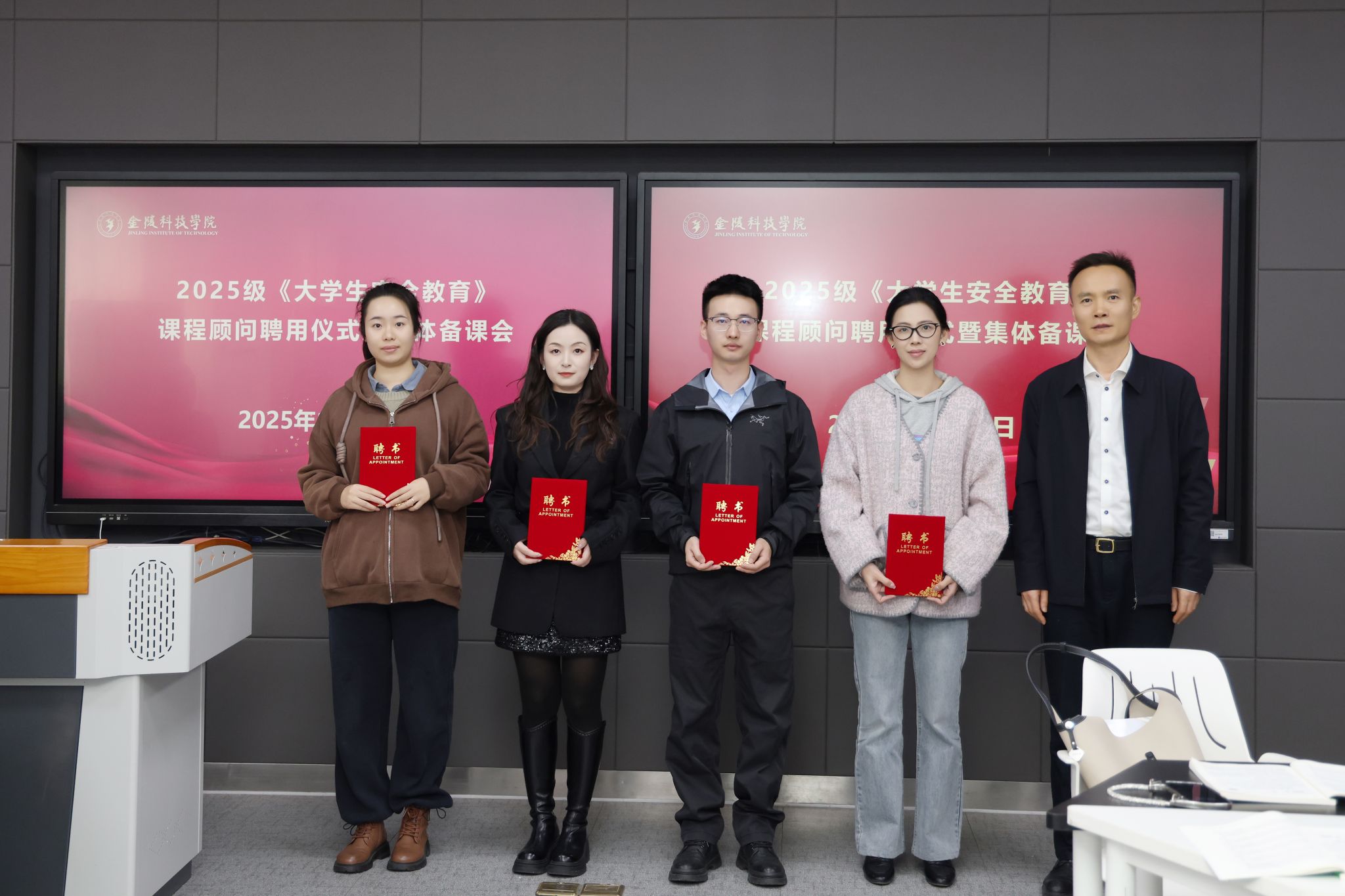 会上,王延光为任课教师代表和课程顾问颁发聘书。王延光要求大家提高政治站位,充分认识安全教育工作的极端重要性,要满怀热情、深入思考、充分备课,紧密结合当前的社会热点和学生实际,及时将鲜活的案例融入教学内容,灵活运用多种教学方式,让安全教育课“活”起来、“实”起来,使同学们从“被动接受管理”转向“主动自我管理”,让安全教育为学生的一生保驾护航,同时培育“人人讲安全、人人重安全、人人护安全”的校园文化,师生合力共筑金科安全管理的牢固防线。